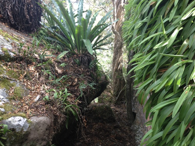 Thankfully for grippy hiking boots the decent wasn’t difficult and we arrived at the saddle in short order. The saddle is a small rainforest and has a space set aside for camping.