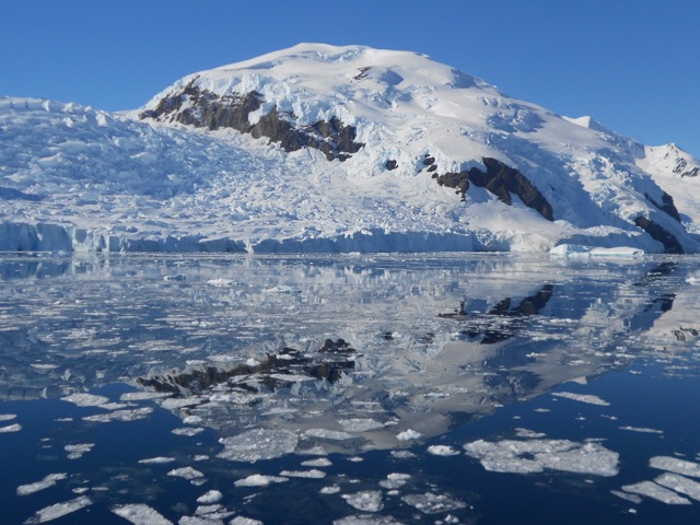 After exiting the station and waiting for the Zodiacs to collect us, we gathered on the pier to watch a leopard seal torment a penguin. When it noticed it had an audience, it made a display of tearing its lunch to pieces before consuming it. While macabre, it’s part of nature and we couldn’t take our eyes from it. Back on the ship we headed further north to Petermann Island for another short hike. The island itself has different colours of snow – green from algae and pink from penguin poo.