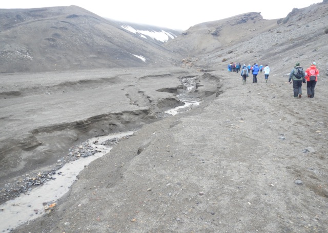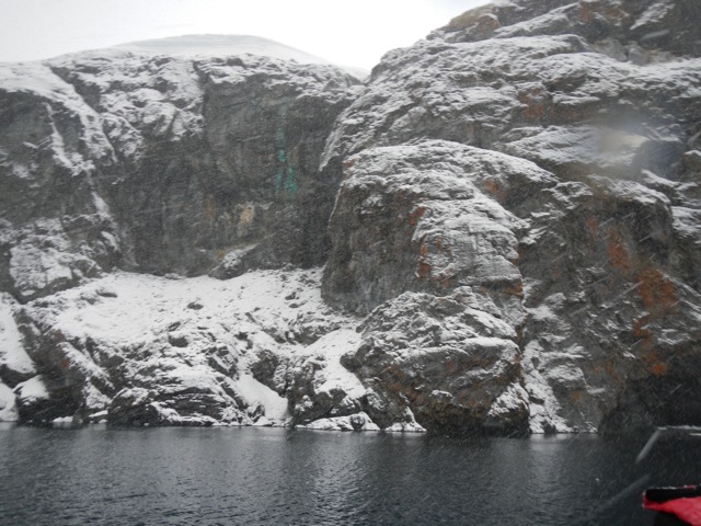 The hike was a walk up a slippery mound to a cairn and down the other side. This island had some beautiful views, but was the smelliest island I’ve ever been to. While the old saying: ‘Don’t eat the yellow snow’ still stands, a new one came from this trip: Definitely don’t eat the pink snow.