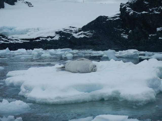 As we made our way back to the ship we spied another leopard seal enjoying a penguin. Penguins are considered the rabbits of the south, they breed like crazy and provide good food sources for the seals and larger sea birds.
