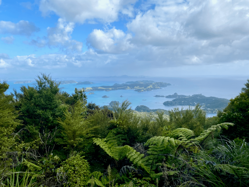 With Oke Bay at my left, I began the climb up the highest peak on the track, Pukehuia, although at 345m it isn’t as tall as some of my previous climbs. Most of the walk will be through forests, so I am resigned to just enjoying what I can. As the climb to the top of Pukehuia is over 2km, the track is not particularly steep. But as the day is warm, I made it to the rest stop at the top covered in sweat, but with great views of the Bay of Islands.