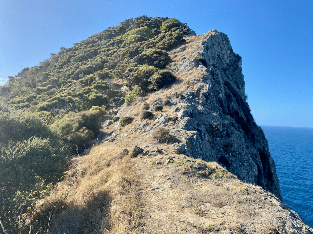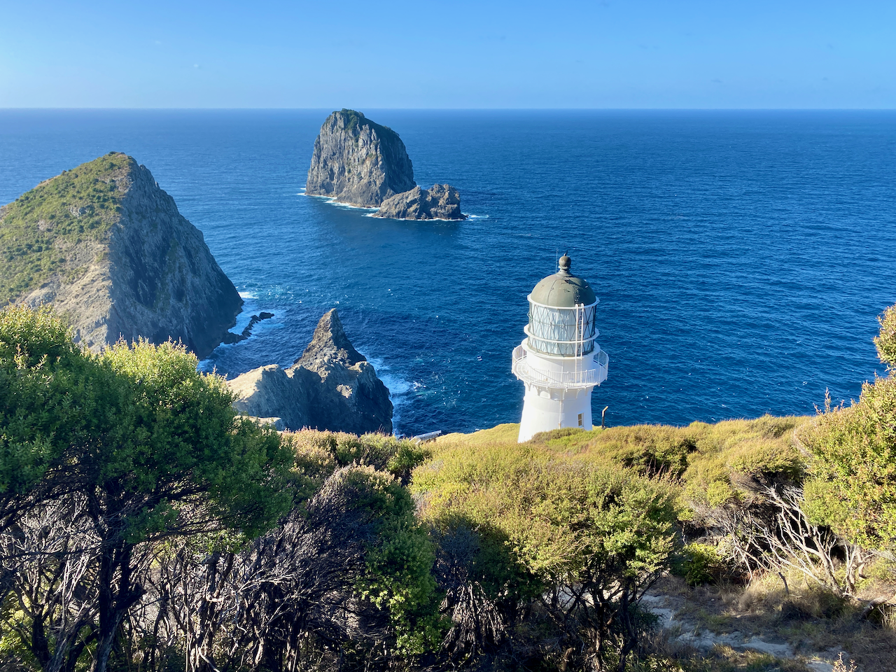 More people had arrived after me the night before, and the hut was rather busy. There was also a cyclone pushing down on Northland, so most people in the hut were arranging to catch the water taxi before the seas got too rough. As I hadn’t seen a single person walking back the other way on day 1, I assumed they’d also got the water taxi too. Maybe I’m too cheap, but I came to walk, so I hikedout. When ready, and with a far lighter pack in the morning, I climbed the hill back to the lighthouse.