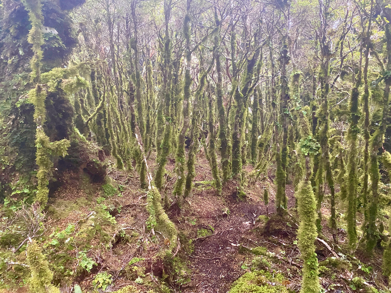 According to the topographic map on my phone, I had about 90 minutes climbing before I met the trail that would take me around the mountain and then another 2 and a half hours until I arrived at Holly Hut. After 30 minutes, the clouds blew off and I finally got a good look at the mountain.