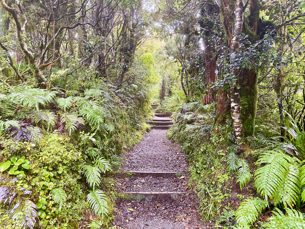 We decided that climbing a mountain without any cover would be dangerous. The lone older guy offered to drive us around to the information centre when we got down, which sealed the deal for the three of us. We headed down the manicured wooden steps for the next two hours.