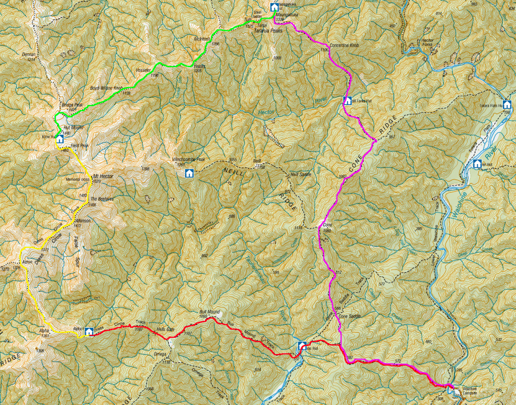 Later, an older gentleman arrived, and we chatted for the afternoon. He’d come up from the Mangorei road end just for the night to relive his youth where he’d climbed Taranaki six times. Later an older couple arrived for the night, they’d walked the same route I had, but instead of stopping at Holly Hut had crossed the Ahukawakawa. They would be finishing the circuit the next day with me.