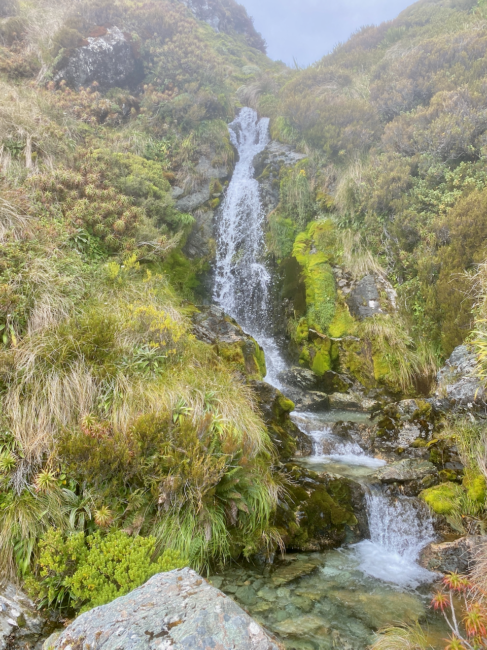 I’d heard much of the water in the streams, huts and campsites were good to drink without treating. So at the first stream I filled up. The taste was crisp, clean and refreshing. I continued along as the trail slowly undulated around the small peaks. I again passed the trio from before the saddle, they too had run out of water, but were more nervous about drinking from the streams.
