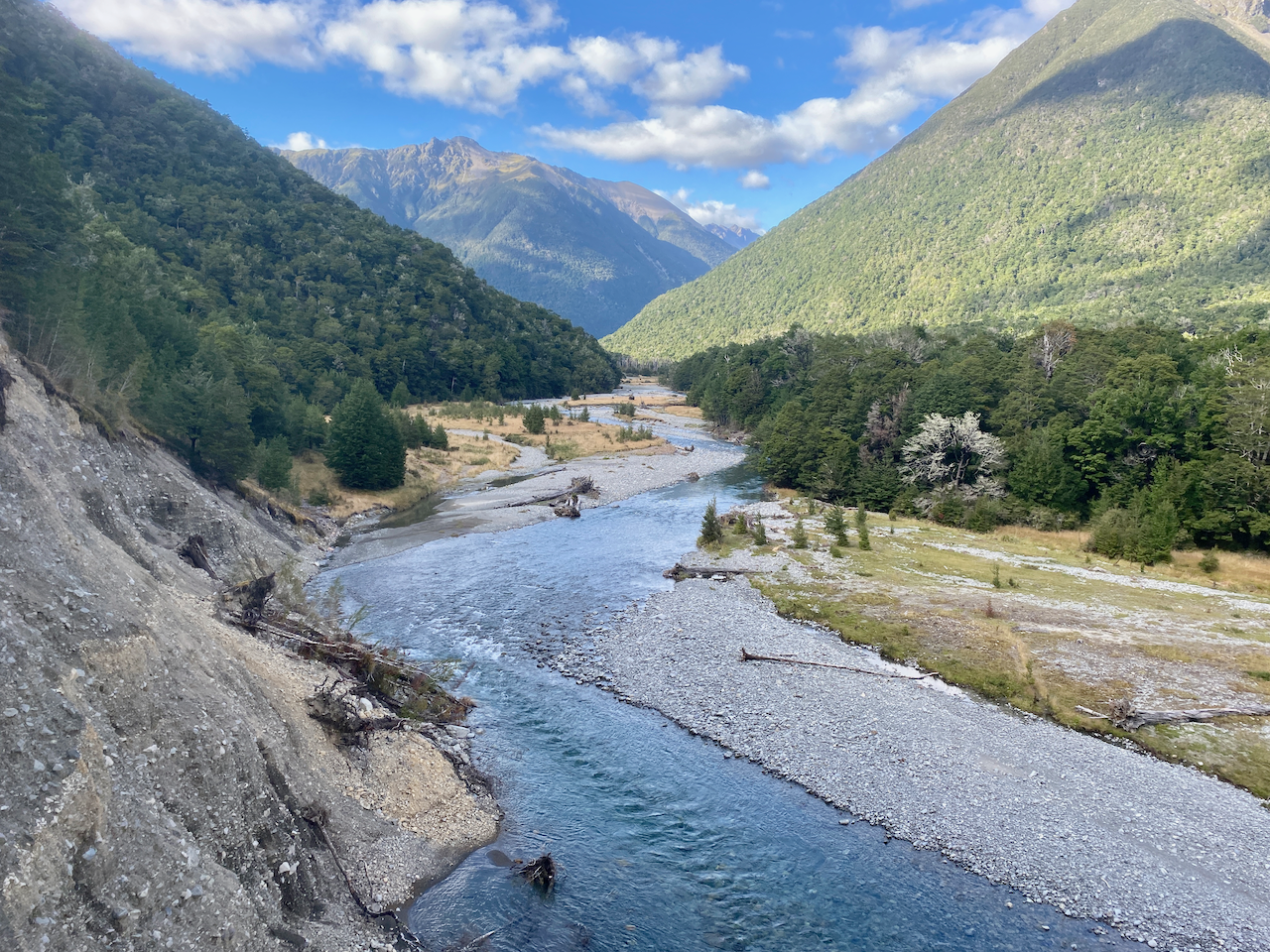 I set out from my accommodation in Masterton and drove into the Tararua ranges on a dirt road, parking at the Waiohine Gorge Carpark. I then headed out from the carpark laden with pack and across the swing bridge over the Waiohine River.
