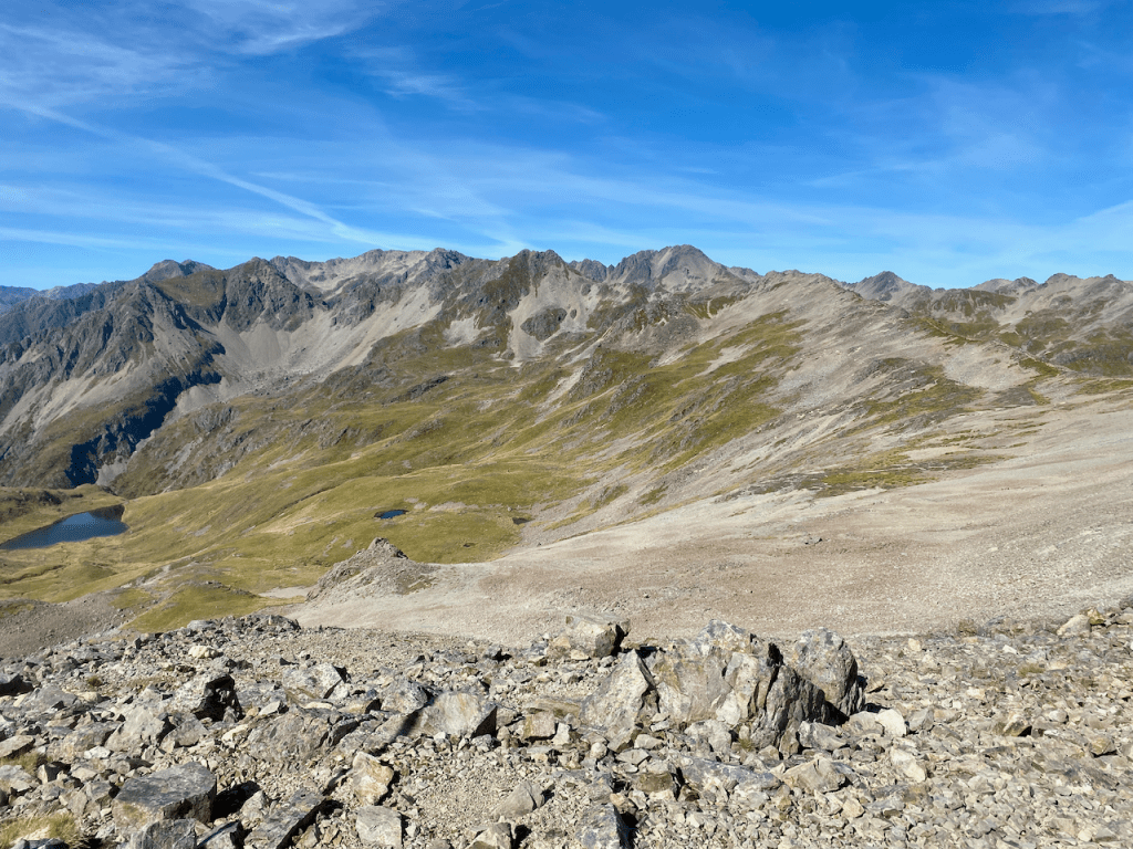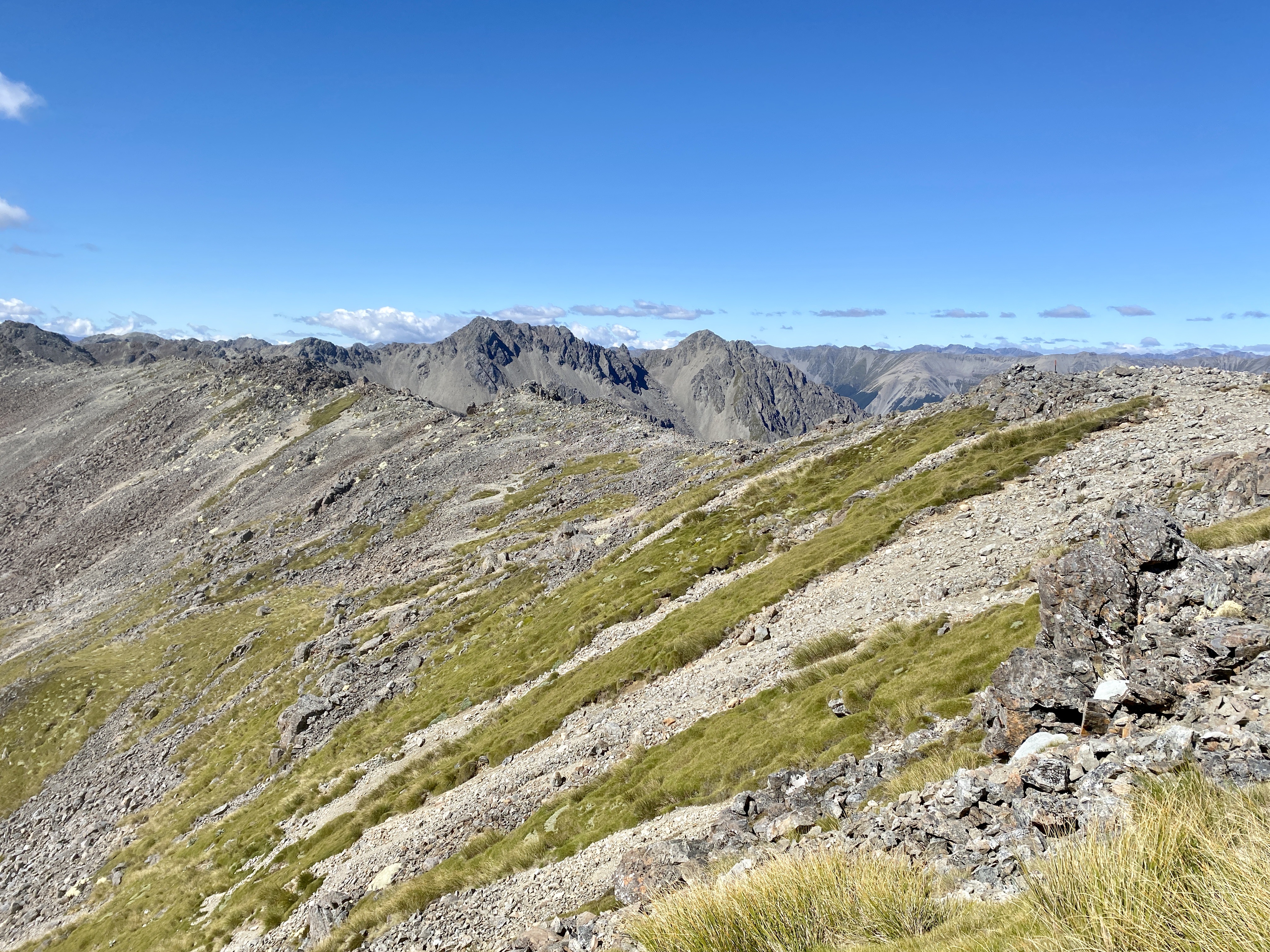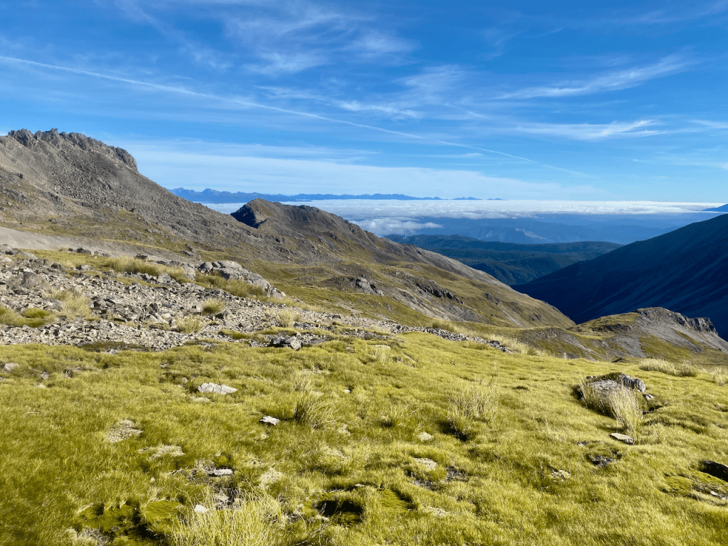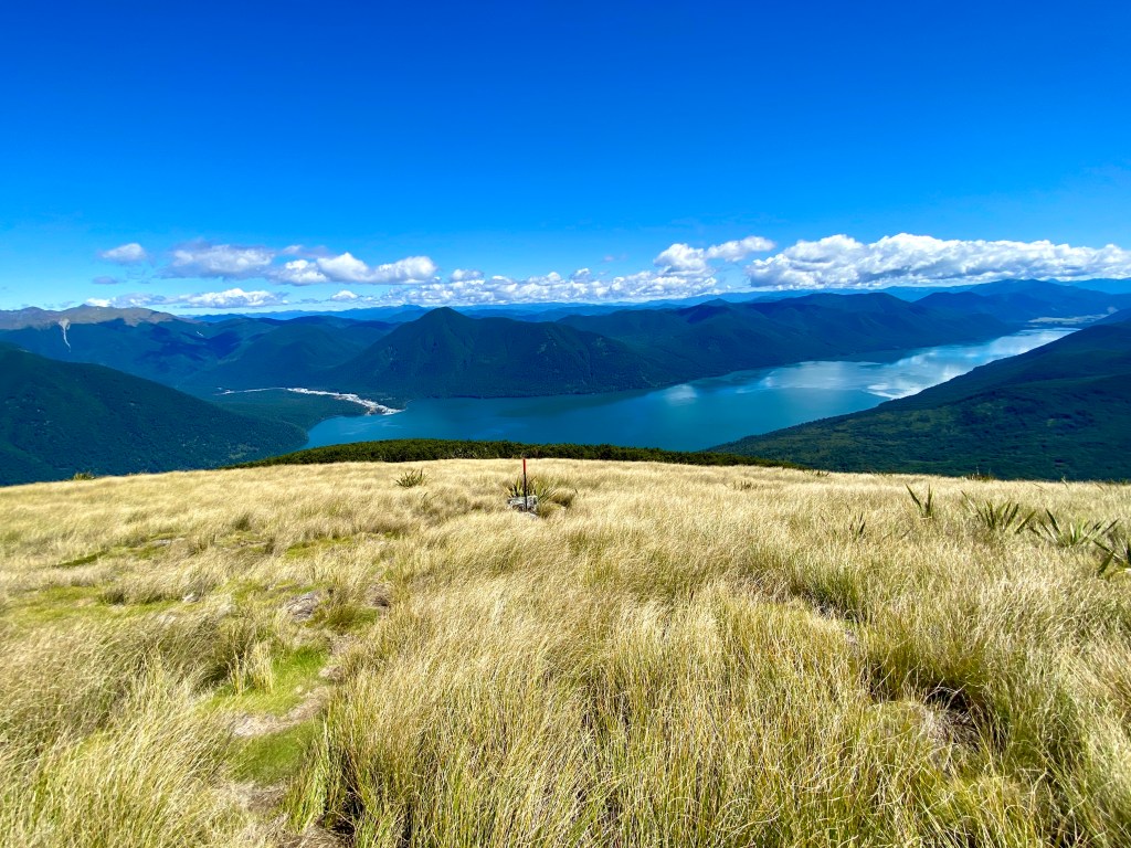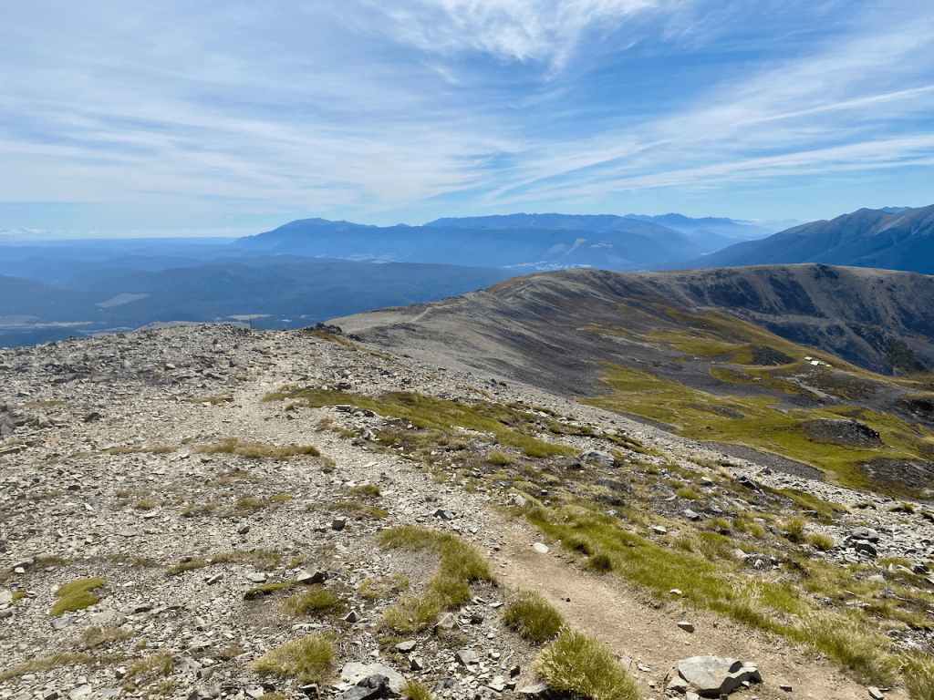 After chatting with a couple of passersby, I headed off again along the ridge, this time slowly descending. The route continued down past a rest shelter likely build for day walkers, to the summit of Mount Robert, the final peak before my big descent out of the National Park.