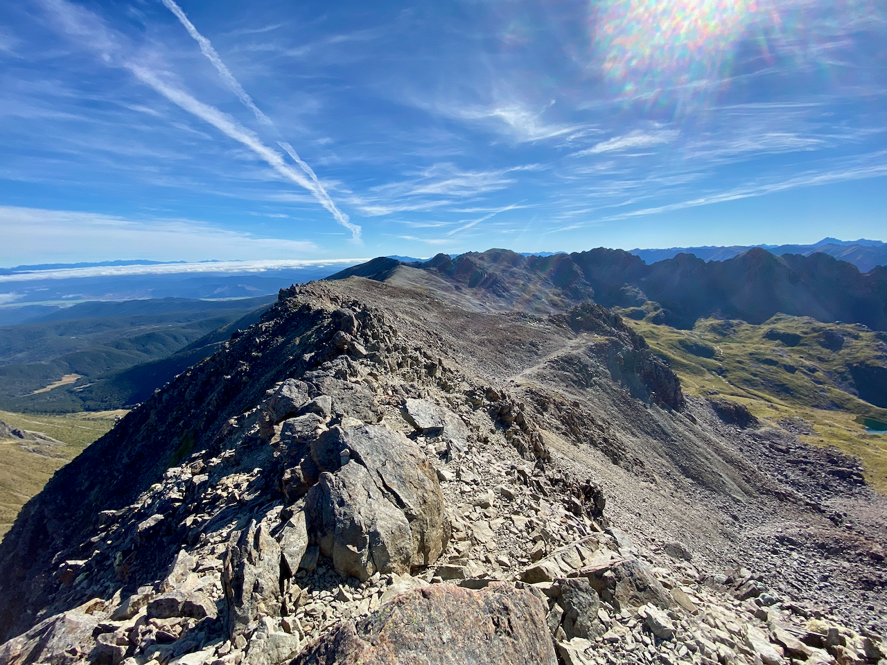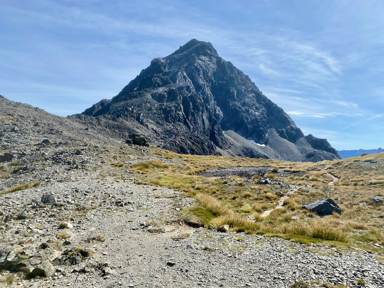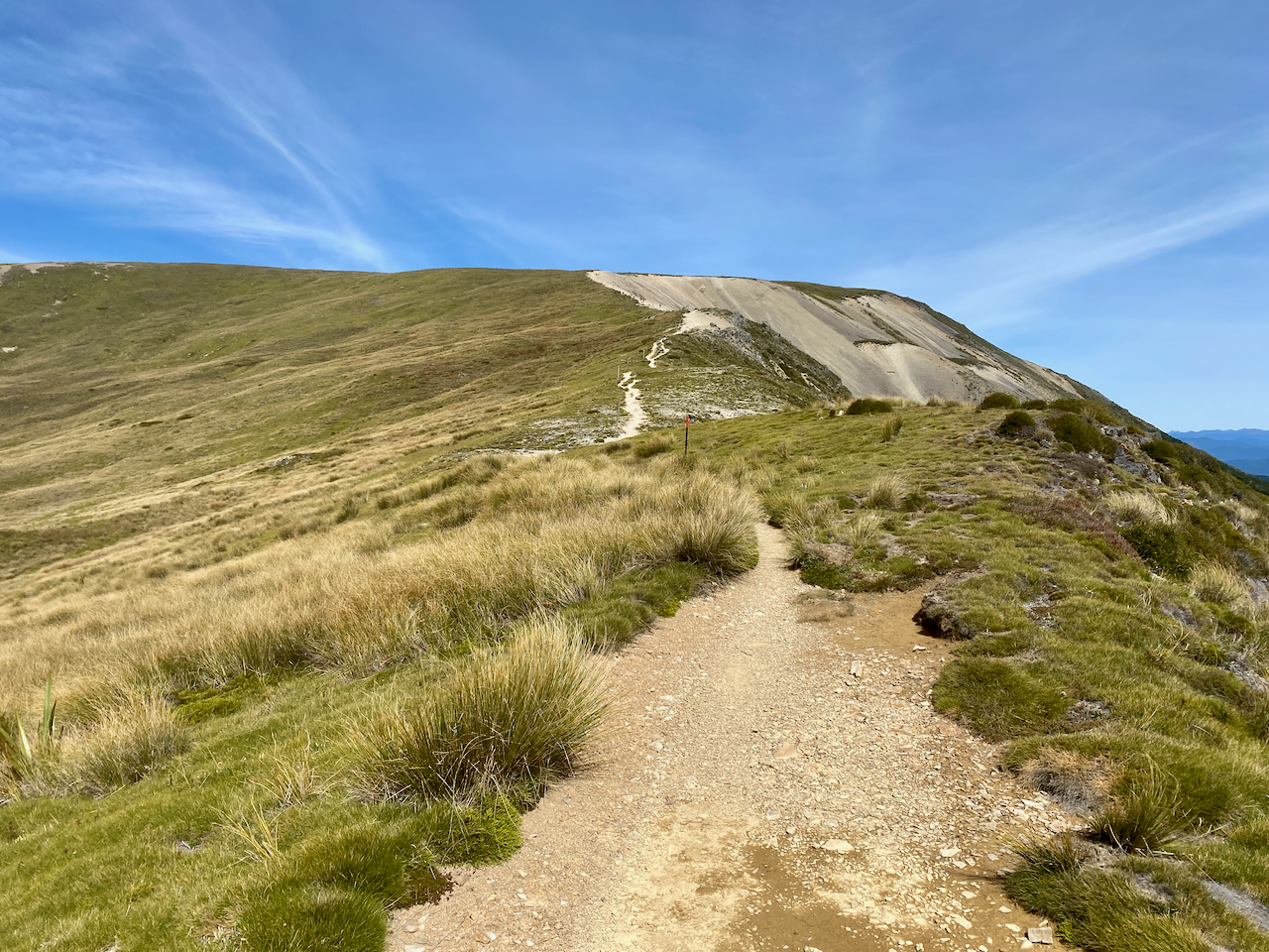 After chatting with a couple of passersby, I headed off again along the ridge, this time slowly descending. The route continued down past a rest shelter likely build for day walkers, to the summit of Mount Robert, the final peak before my big descent out of the National Park.