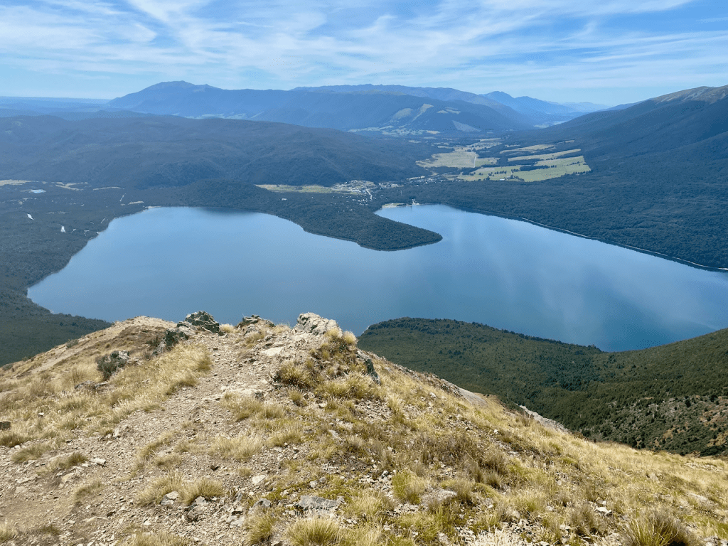 I took a break at the top to chat to another climber and admire the view down on Lake Rotoiti.